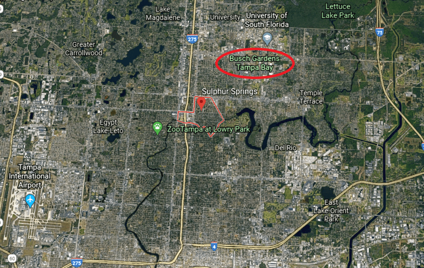 This brings me to the Busch Gardens in Tampa, located just slightly to the northeast of Sulphur Springs.