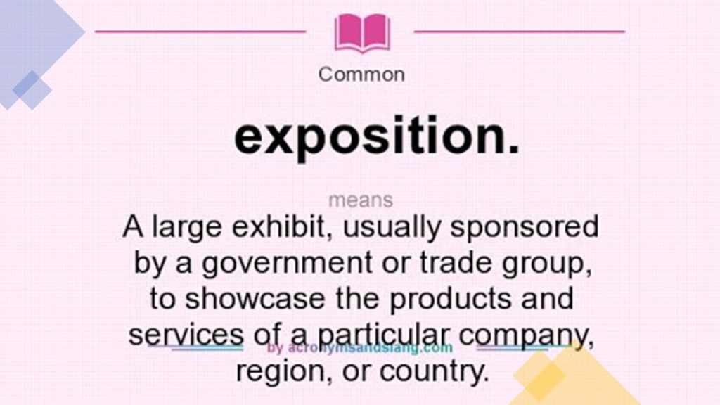 What better way to tell your audience the story you want them to believe than the other definition of exposition, a large exhibition of art or trade goods.