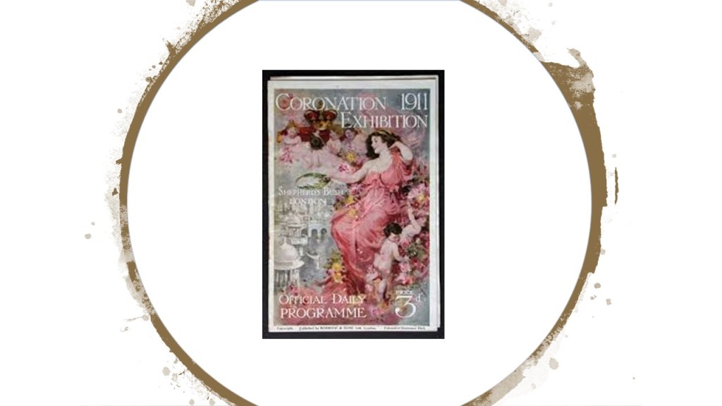 The Coronation Exhibition was held in the White City starting in May of 1911, to showcase highlights of the British Empire and to celebrate the coronation of King George V and Queen Mary in Westminster Cathedral in June of 2011.