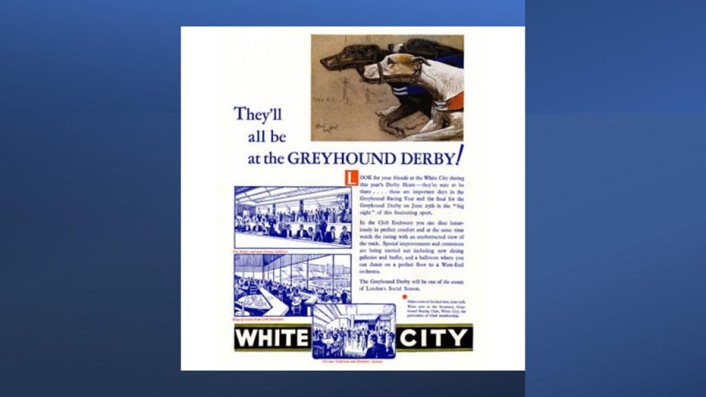 Also, like the White City Stadium in Shepherd’s Bush, there was a stadium and track here that became a popular Greyhound Racing Track…