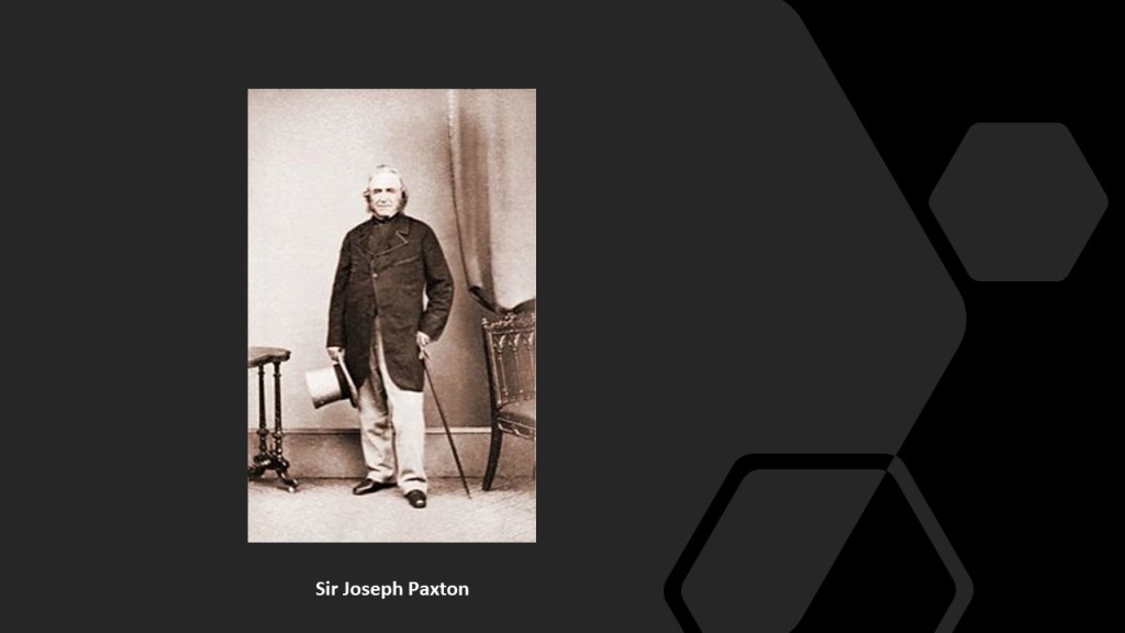 Joseph Paxton was also credited with being the designer of the Crystal Palace for the 1851 Exhibition.