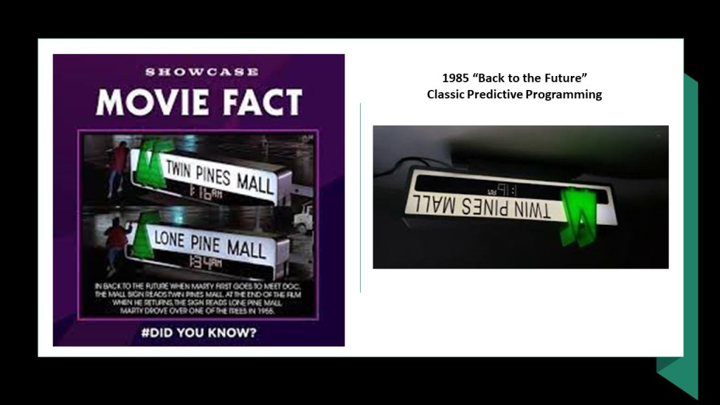 “Back to the Future” is a classic example of predictive programming about “9/11” happening in the future, and there is more than one example about this in the movie.