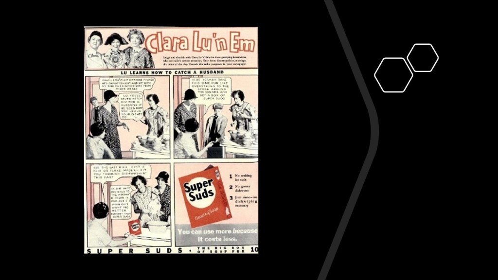 The first nationally-broadcast daytime serial drama about three women and their families who lived in a small-town duplex was “Clara, Lu, ‘n Em,” which started on February 15th of 1932, and “Super Suds” was their first program sponsor.