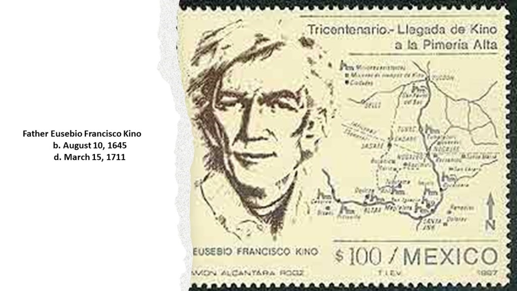 We are told that Father Kino was a Jesuit, missionary, geographer, explorer, cartographer, and astronomer, who was born in northern Italy, and spent the last 24-years of his life in modern-day Sonora in Mexico and southern Arizona in the United States…