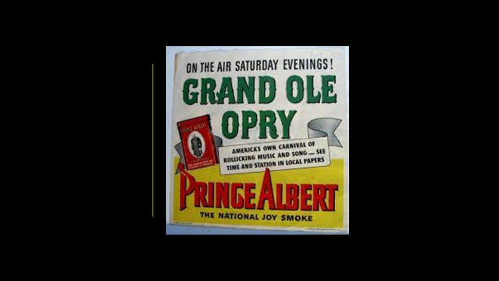 The National Barn Dance went on-the-air in Nashville, Tennessee, in 1925, and was renamed the “Grand Ole Opry” in 1927, and NBC carried portions of the program from 1944 to 1956, and which apparently had the Prince Albert in a can cigarette and pipe tobacco as one of its early sponsors.