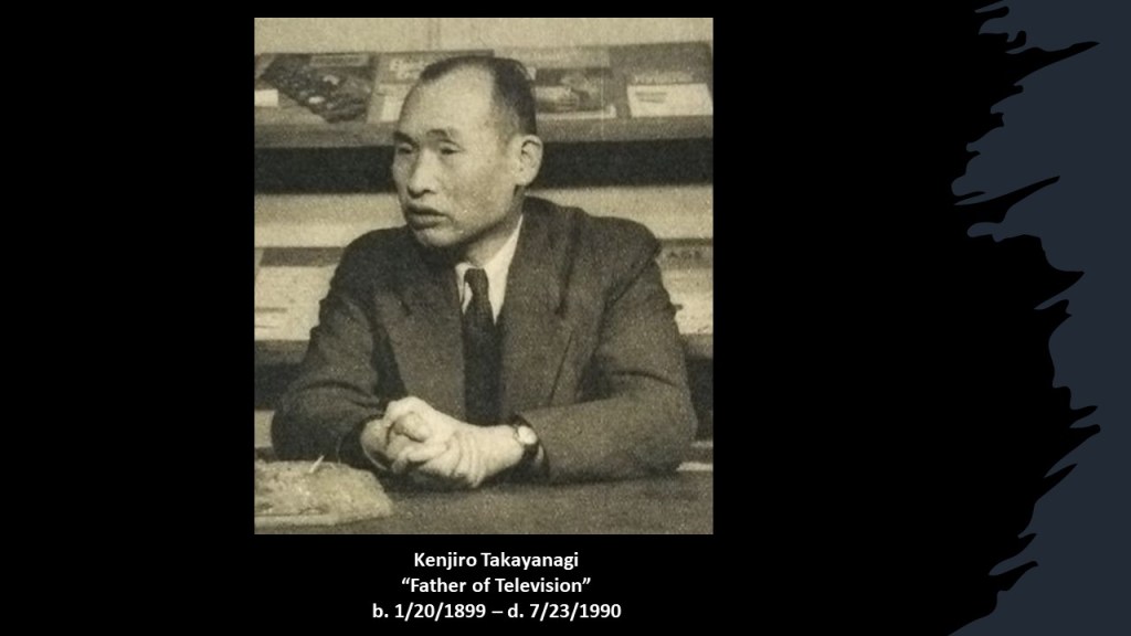 Kenjiro Takayanagi, a Japanese electrical engineer, is referred to as the “Father of Television” for developing the world’s first all-electronic television receiver, though his research on creating a production model was halted by the United States after Japan’s loss in World War II.