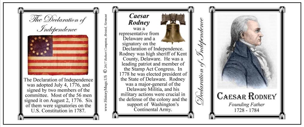 Rodney was a delegate to the Continental Congress between 1774 and 1776, and a leader in the Delaware Committee of Correspondence, and was present when the Delaware Assembly voted to sever all ties with the British Parliament and King.