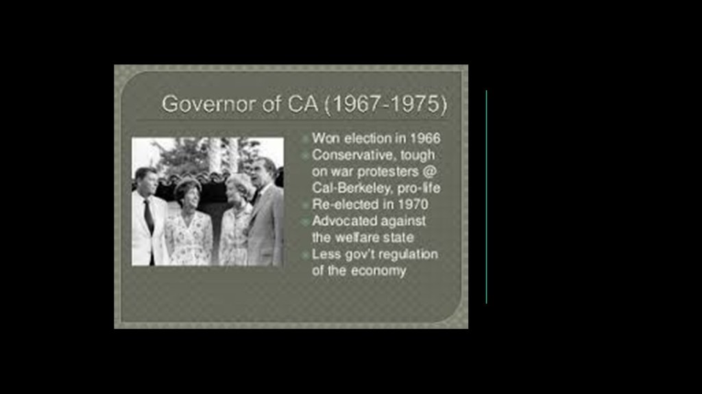 His terms as Governor shaped the public policies he would pursue as President, like speaking out against the welfare state and advocating the ideal of less government regulation of the economy.