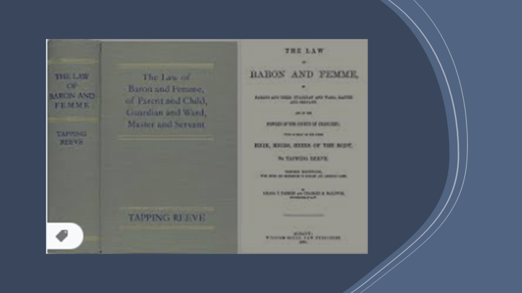 Tapping Reeve later became Chief Justice of the Connecticut Supreme Court in 1814, and his book “Law of Baron and Femme” published in 1816 became the premiere American treatise on family law for much of the 19th-century, with revisions and republication in 1846, 1867 and 1888.