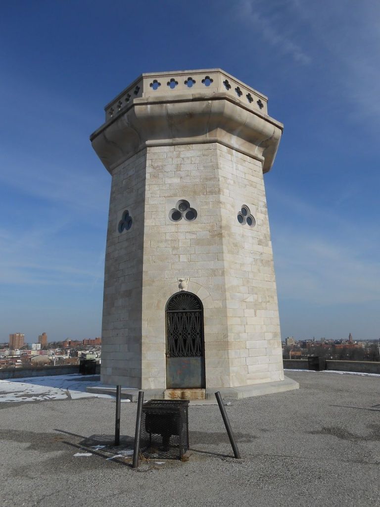 The tower itself is 30-feet high, and said to have 18-inch wide marble walls. The entrance was sealed at some point in the 1900s, so entry is no longer possible.