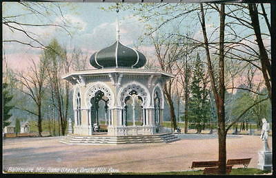 This postcard circa 1910 shows the Moorish-looking band stand at Druid Hill Park in Baltimore, with its unique arches and columns, which was demolished in the 1950s…