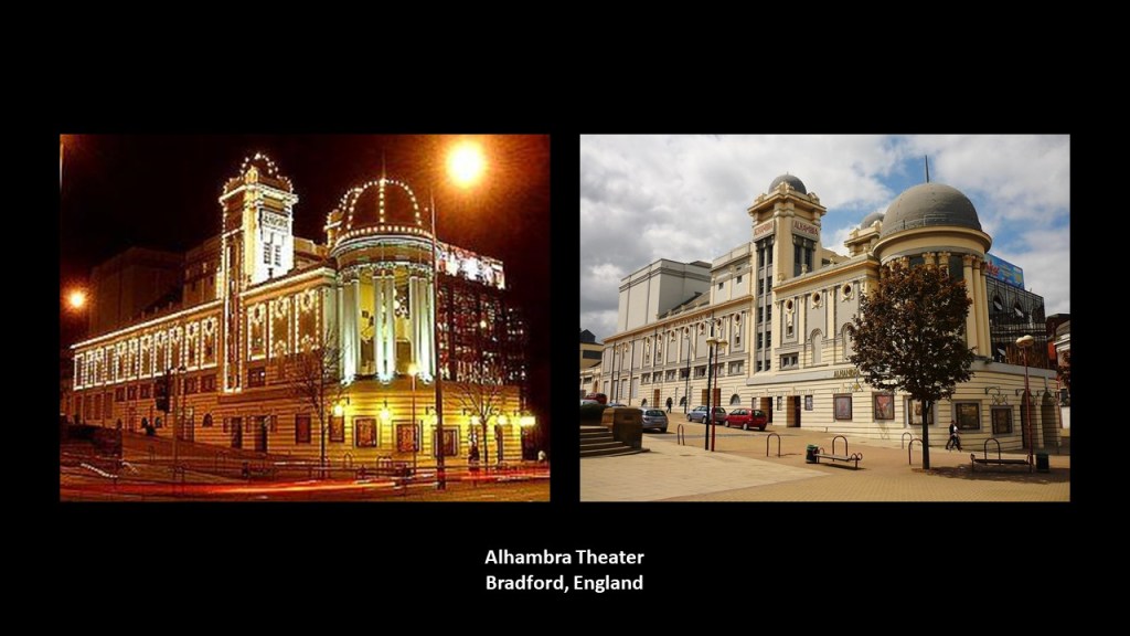 This is the Alhambra Theater in Bradford, England, said to have been built starting in 1913 and opening in 1914 .