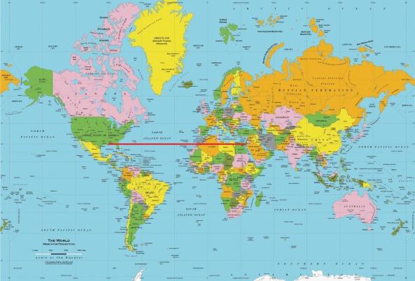 I have drawn a red line on this world map to demonstrate that there is a straight, west-to-east, linear relationship between the location of the Mississippi River Delta, and that of the Nile River Delta.