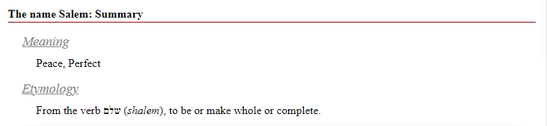 The word Salem or Shalom in Hebrew, means “Peace’…