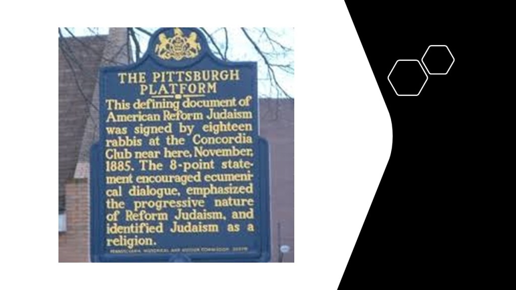 The Pittsburgh Jewish Community starting in 1838, and is known in the broader American Reform Jewish community for the 1885 Pittsburgh Platform that called for Jews to adopt a modern approach to the practice of their faith, though it was never formally adopted by the Union of American Hebrew Congregations.