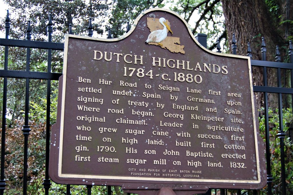 …in search of higher ground to live along a line bluffs south of Baton Rouge, and came to be known locally as “Dutch Highlanders.”