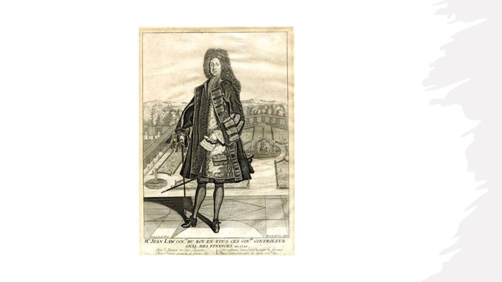 John Law was a Scottish gambler-turned-economist & banker who served as Controller-General of Finances for his friend, Phillipe II, the Duke of Orleans, regent for the juvenile Louis XV of France.