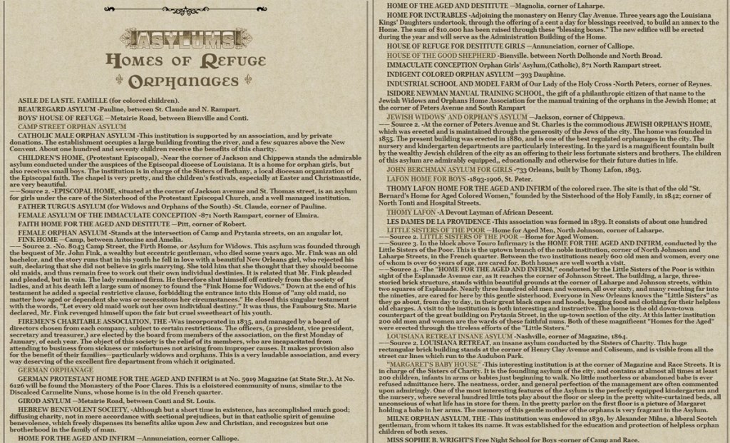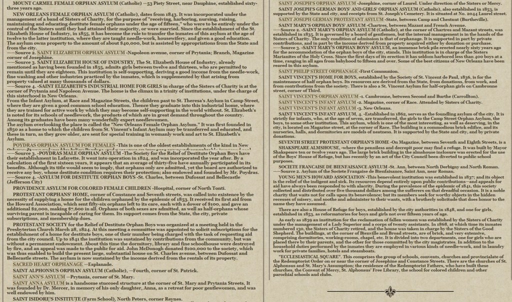 In addition to the German Protestant Orphanage, established in 1867, and the German Evangelical Lutheran Bethlehem Orphanage, established in the 1880s, there was a whole host of orphanages and houses of refuge in New Orleans: