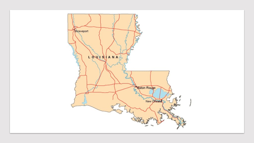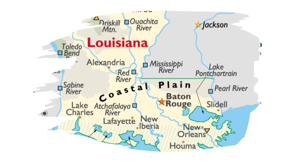 …with a starting point of New Orleans, located a short-distance northwest of the Mississippi River delta region…