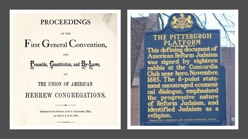 One states: “We recognize in the Mosaic legislation a system of training the Jewish people for its mission during its national life in Palestine, and today we accept as binding only its moral laws, and maintain only such ceremonies as elevate and sanctify our lives, but reject all such as are not adapted to the views and habits of modern civilization.”