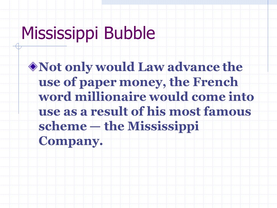 The Mississippi Company boomed on paper, however it only took 2 years for the the bubble to burst in 1720.