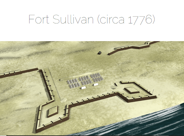 The first fort built on this location, Fort Sullivan, was said to have been built from Palmetto logs, giving the inspiration for the flag of South Carolina and its nickname “The Palmetto State,” and said to have been still incomplete when it was attacked by the British during the American Revolutionary War in 1776, and named after the commander, Colonel William Moultrie.