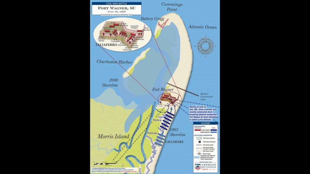 The Battle of Fort Wagner took place on July 18th of 1863, where the 54th Massachusetts, known to history as the first African-American regiment in the Union Army, unsuccessfully assaulted Fort Wagner as depicted in the 1989 movie “Glory.”