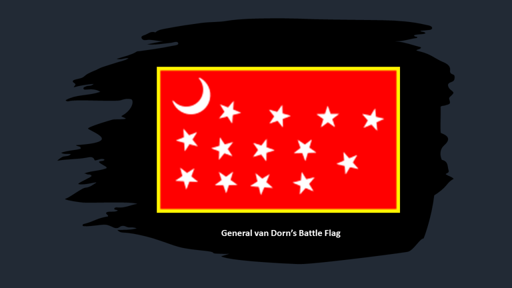 Another battle commander’s flag with the crescent symbol in the upper-left-hand corner was the flag of Confederate Army Major General Earl van Dorn, the great-nephew of Andrew Jackson, who led the Confederate forces at the Battle of Pea Ridge in Arkansas in March of 1862.