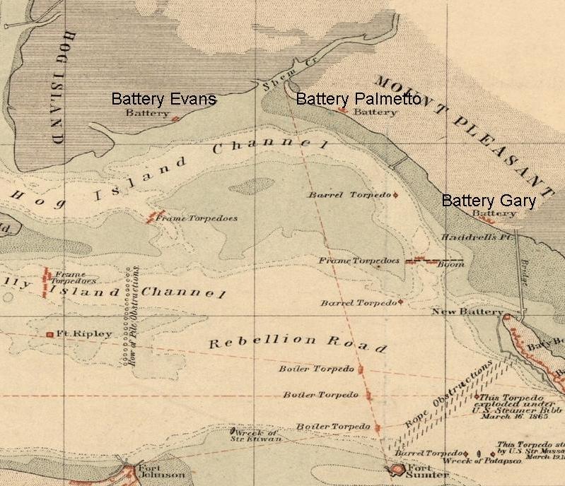Along the coast of Mt. Pleasant which includes Hog Island, there were three Confederate batteries said to have been constructed over the course of the war to defend Charleston Harbor.
