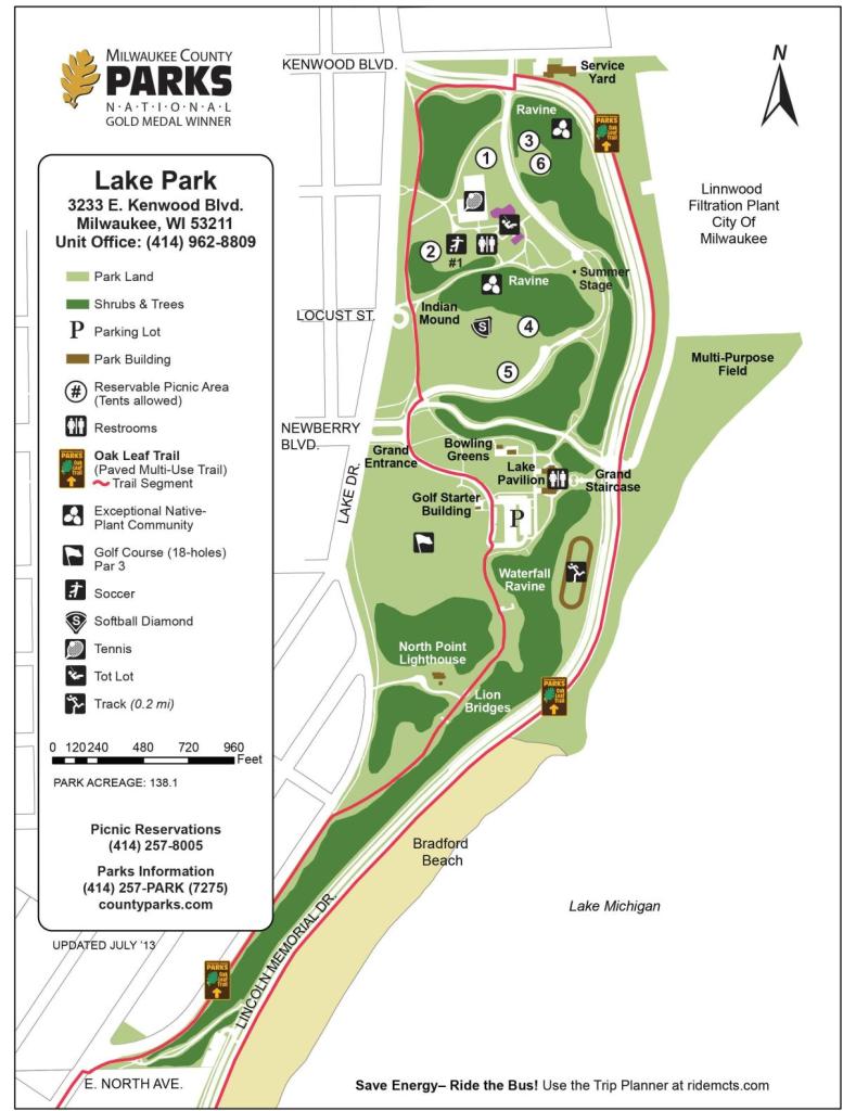 …and starting in 1892, Olmsted is credited with the Grand Necklace of Parks in Milwaukee, Wisconsin, also known as the Emerald Necklace, which includes Lake Park…