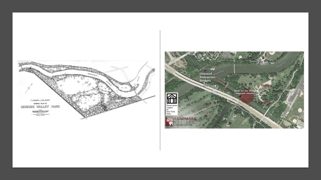 …the Buffalo Olmsted Park System, New York’s oldest system of paths and pathways, which included six parks, seven parkways, eight landscaped circles, and other public spaces, said to have been designed with Vaux starting in 1868.