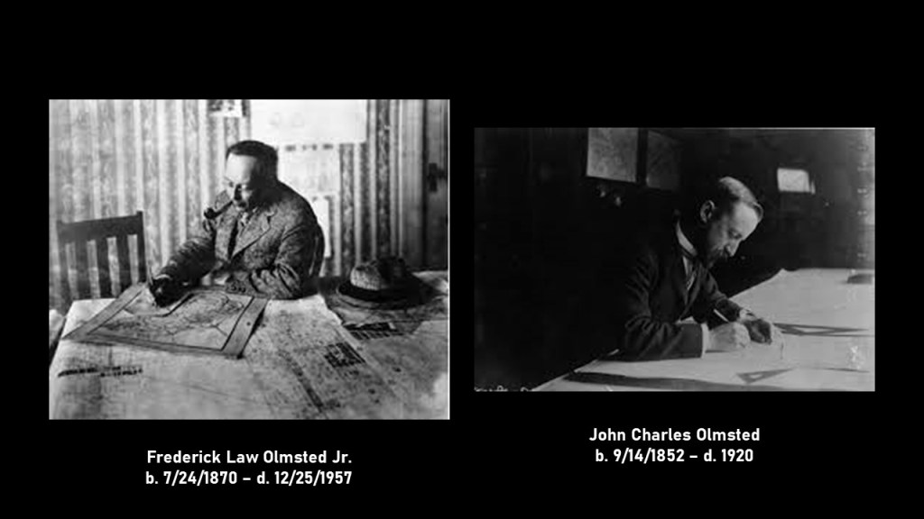 There are many famous architects and engineers to choose from for a study of the reset historical narrative, but Frederick Law Olmsted, and later the Olmsted Brothers, who carried on his legacy in the field of landscape architecture, seems to have been elevated in stature and ability to provide the explanation for how our current narrative came into existence after I believe was an unnatural occurrence that happened on earth not all that long ago, relatively-speaking.