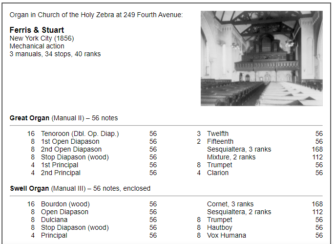 Here is a description of the organs that were once housed in this beautiful building destroyed by fire.