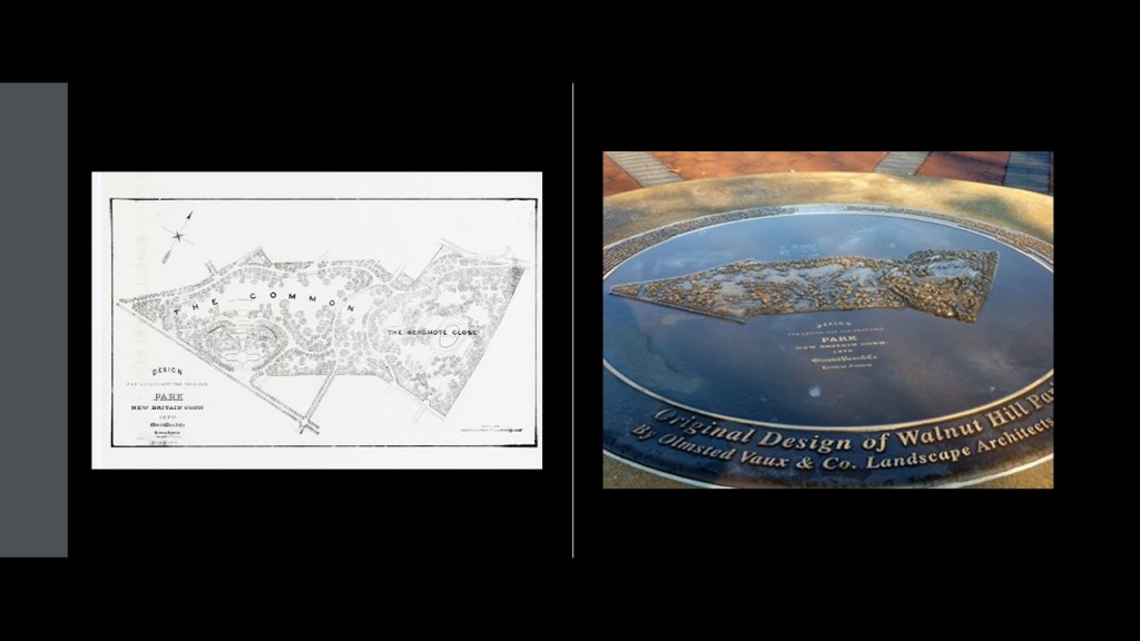 The plan for the Walnut Hill Park in New Britain, Connecticut, was said to have been designed by Olmsted and Vaux in 1870.