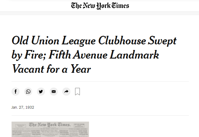 This Union League Clubhouse closed its doors permanently on January 24th of 1931, after a new clubhouse was built on Park Avenue and 37th Street starting in 1929.