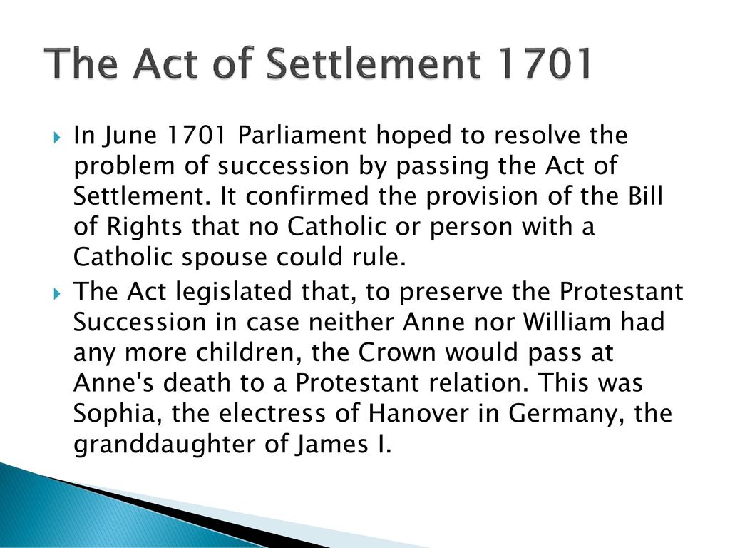 The 1701 Act of Settlement was passed to settle the succession of the crowns of England and Ireland on Protestants only, and their daughter Princess Sophia was the next Protestant in-line for the throne.