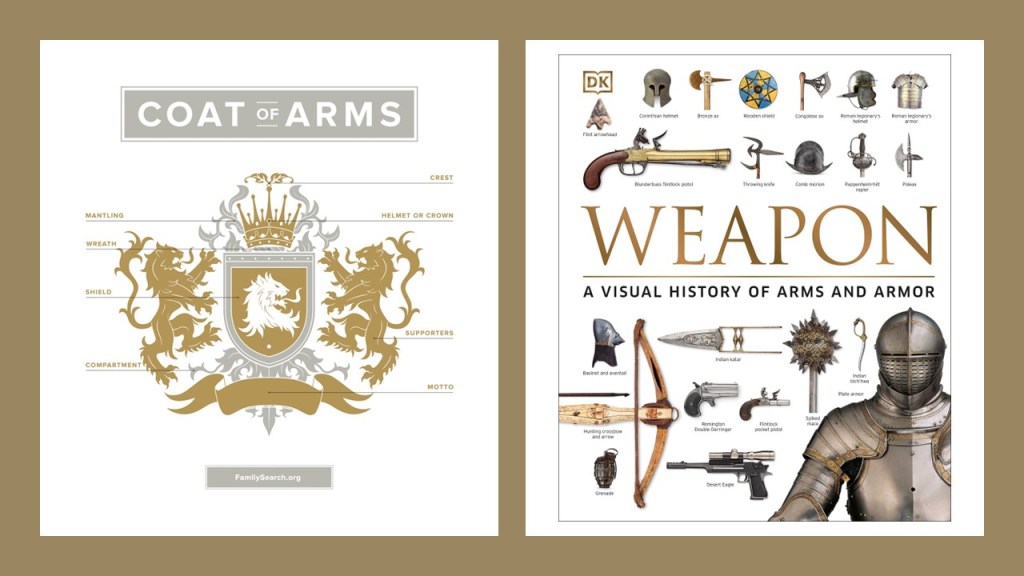 There would appear to be some kind of connection between the use of the word “arms” to refer to both heraldry devices and weapons.