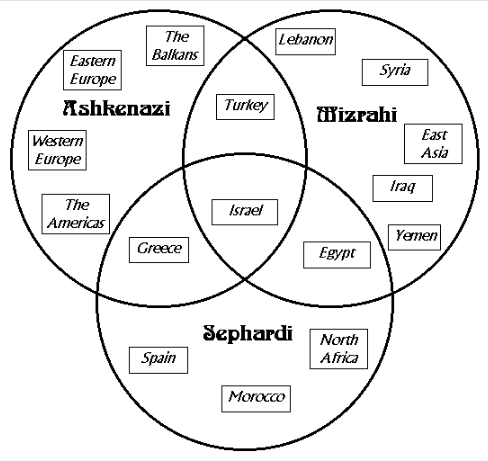 The available information today is that Ashkenazic Jews are the Jews of France, Germany, and Eastern Europe and their descendants, and that “Ashkenaz” is used in Hebrew to refer to Germany; Sephardic Jews are the Jews of Spain, Portugal, North Africa, and the Middle East; and that the Hebrew word “Sepharad” refers to Spain; and Mizrahi Jews, with “mizrahi” meaning east and referring to Jews whose ancestors moved east instead of west.