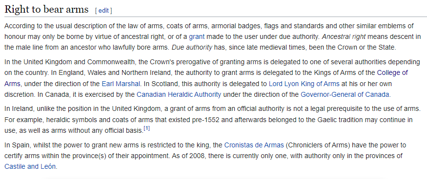 “The Laws of Heraldic Arms governs the ‘bearing of arms,’which is the possession, use or display of arms, also called ‘Coat-of-Arms.’
