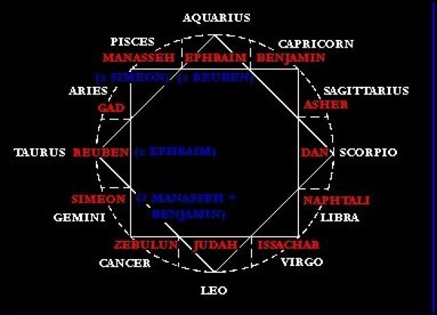These are some examples of the same 8-pointed star visible in the Tribes of Israel graphic just shown previously found in diverse places.