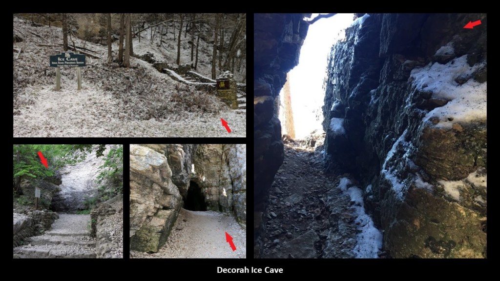 …one of which is located near the Decorah Ice Cave, a limestone and dolomite cave that has ice on the inside even during the summer…