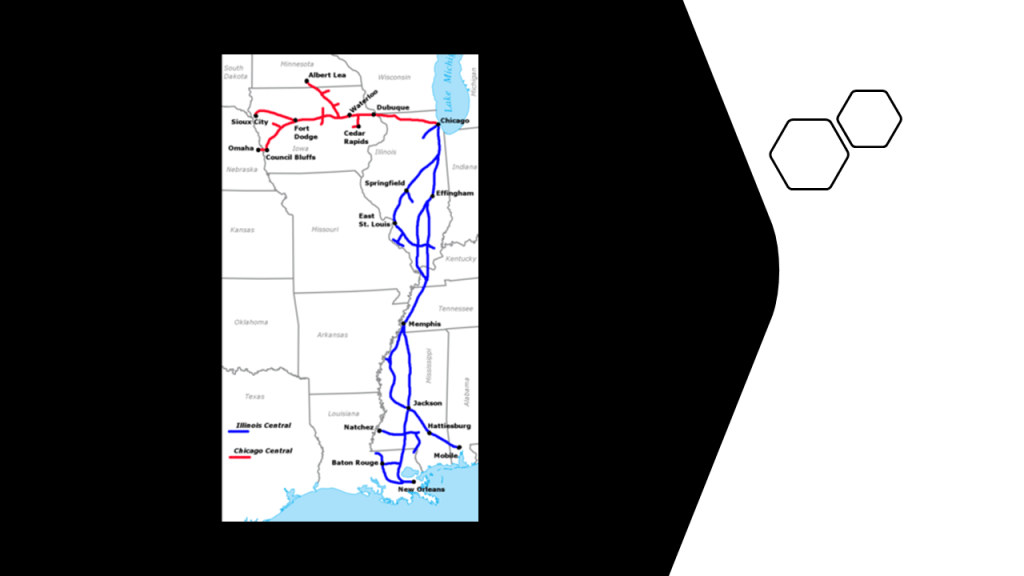 The Illinois Central Railroad ran through Iowa between Sioux City and Dubuque, one of four railroads were authorized by Congress via the “Act of 1856…”