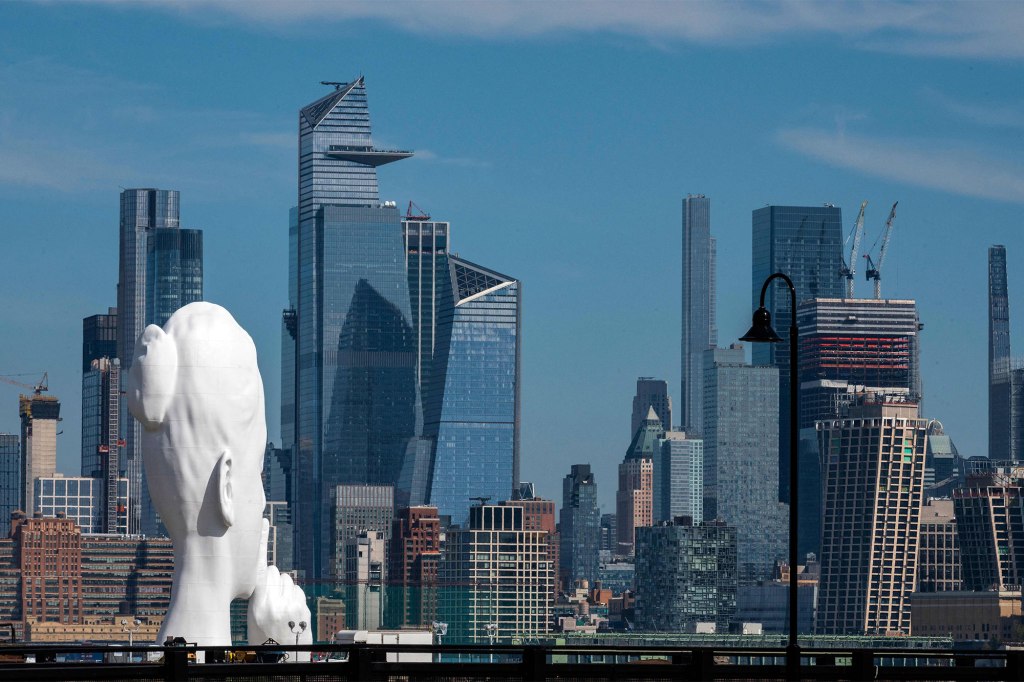 E79 left a comment letting me know about the new”Shhh” statue in New Jersey, which is on the waterfront in Jersey City, facing New York City.