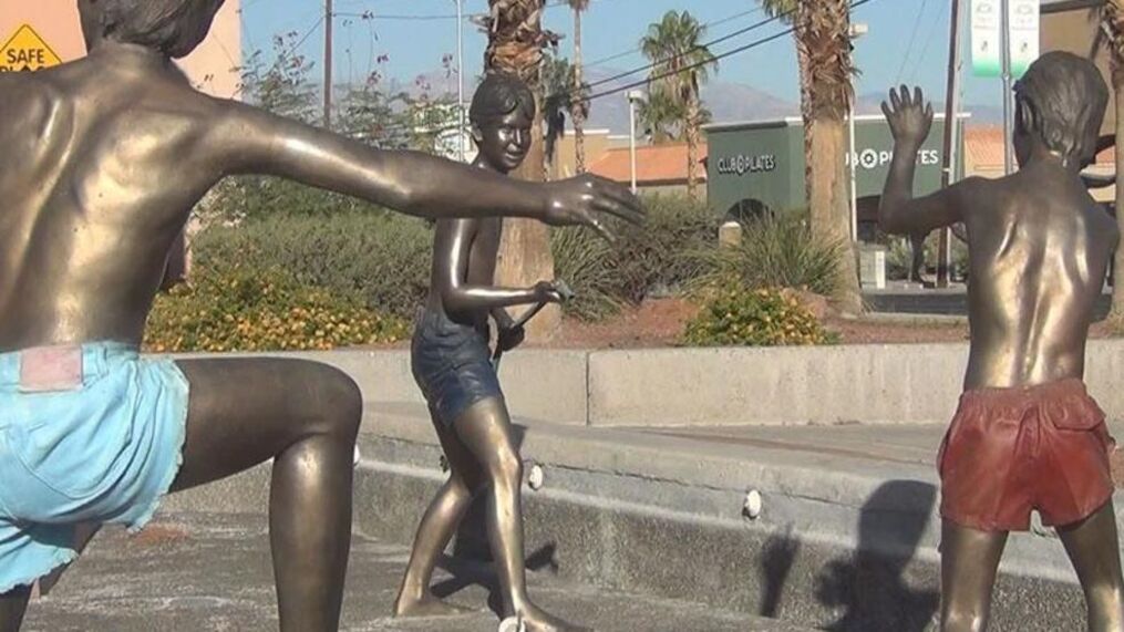Part of a county art project, it was moved there from its original location at the Decatur and Flamingo intersection because the lion was stolen days after it was installed back in 2016, and the lizards, which are also called alligators or crocodiles, were vandalized.