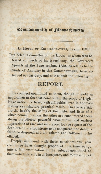 Apparently after the Massachusetts State Legislature passed the Anatomy Act in 1831, medical schools were allowed to obtain the bodies of the poor, the insane, and those who died in prison.