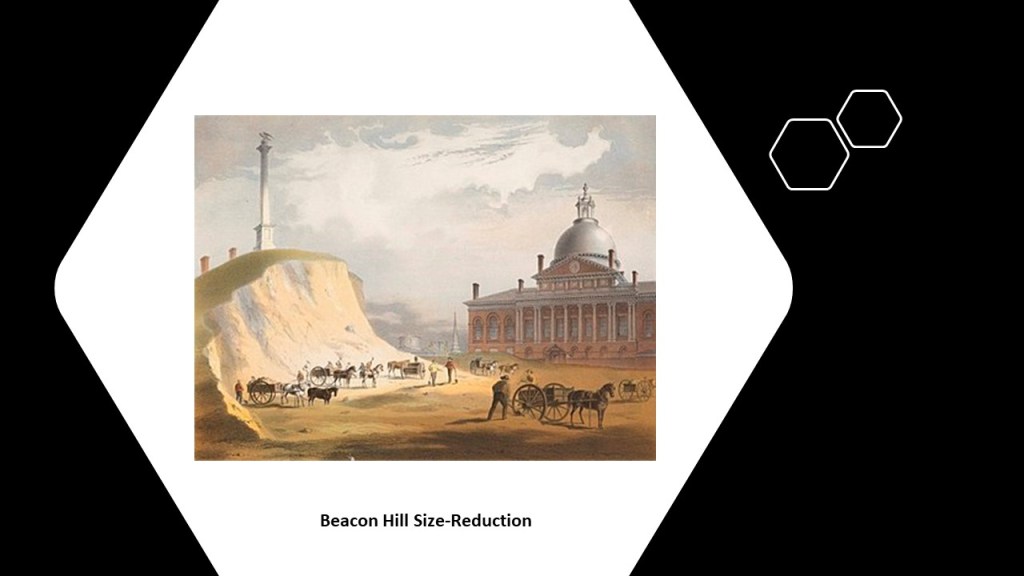 Beacon Hill itself was reduced from 130-feet, or 42-meters, to 80-feet, or 24-meters, between 1807 and 1832.