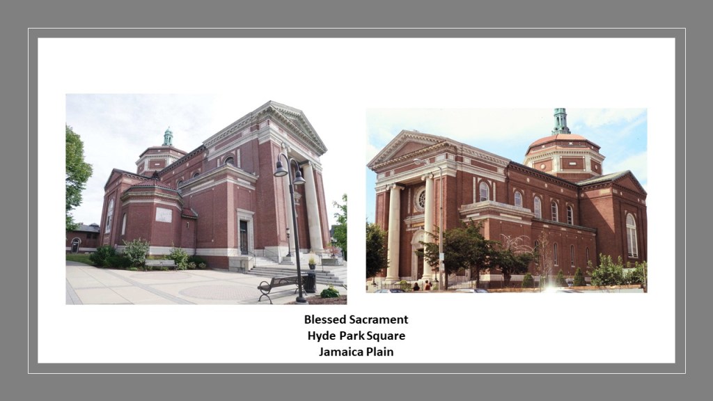 One more church in Jamaica Plain to bring forward that I found when searching for images on the First Church was the Blessed Sacrement Church in Jamaica Plain’s Hyde Square.