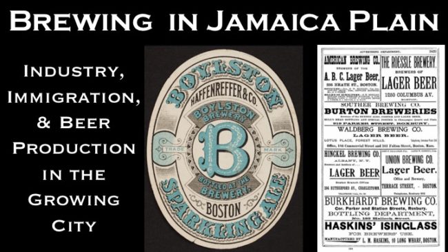 Jamaica Plain was the home to most of Boston’s thirty-one breweries prior to the outlawing of alcoholic beverages during the Prohibition Era starting in 1920.