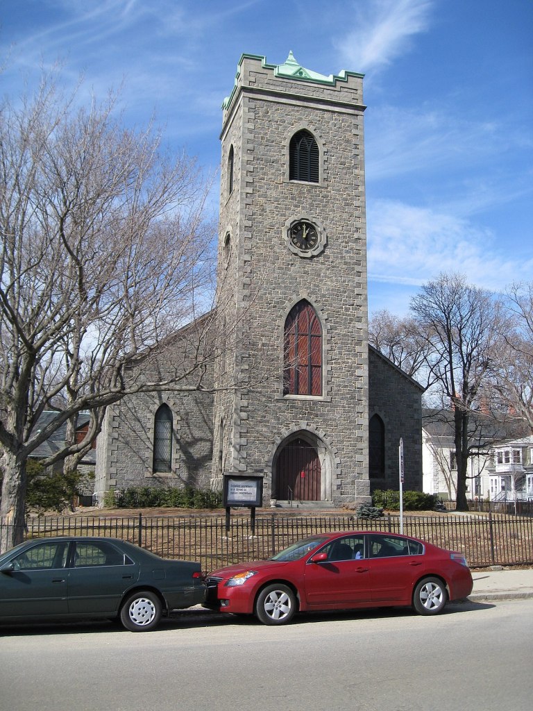 …a stone church that was said to have been built in granite in 1854 in the Gothic Revival-style and designed by the prominent Boston architect Nathanial J. Bradlee.