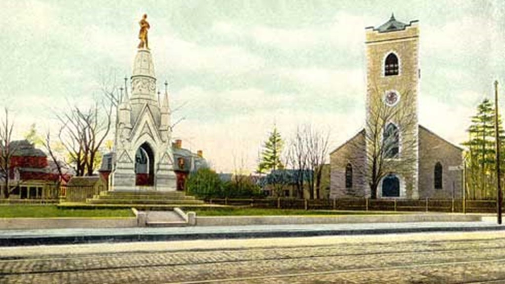Co-located in the same place are the Soldier’s Monument and the First Unitarian Universalist Church in the Jamaica Plain neighborhood.